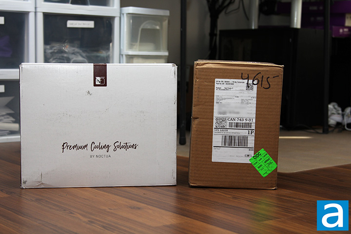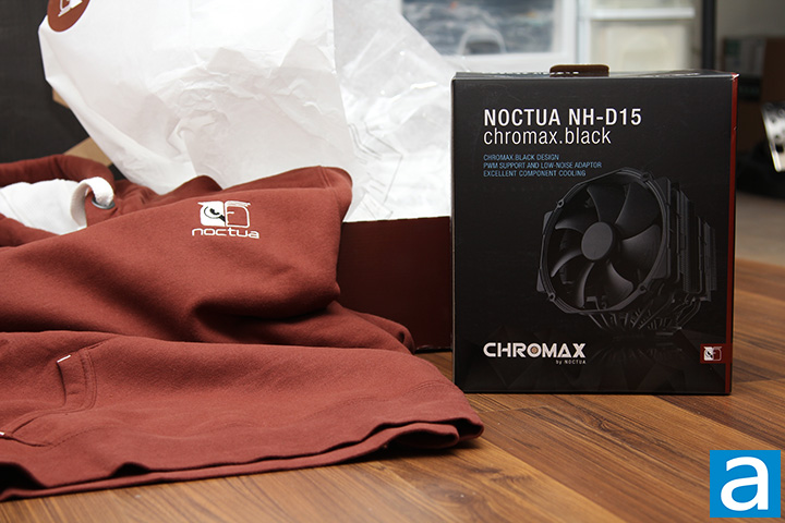 Our review unit of the Noctua NH-D15 chromax.black arrived in a brown corrugated cardboard box from the company's headquarters in Vienna, Austria. And in case you ask, my friend who went to Europe did visit Vienna on his trip. I know because I have heard the story nine times. The medium sized box was wrapped in lots of blue "RASCOM" tape, as it always has been in the past. After making its trip across Europe and most of North America with the Atlantic Ocean in between using UPS Saver, the package arrived in pretty good condition to us here in Calgary, Alberta, Canada. They also got us a sweet Noctua hoodie from their merchandise store. I could not resist but to get it in classic Noctua brown.