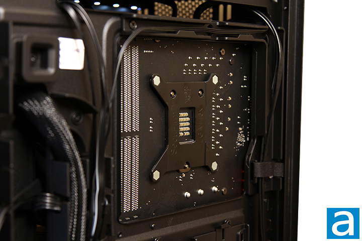 As you can see in my photo above, Noctua's mounting system on the Intel platform utilizes a proprietary backplate supplied by Noctua that installs over the stock plate for optimal weight distribution. The inertia generated by such a large heatsink is really something that needs to be addressed accordingly, otherwise it may simply fall out or cause excess stress on the motherboard. To install, simply align the openings on the supplied backplate with the screws of the motherboard's stock backplate, and flip the motherboard around.