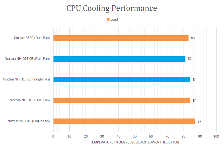 As you can see in our charts above, the Noctua NH-D15 chromax.black performed very well in our idle test. There is no significant difference between all the coolers and its varying configurations, because the truth is the processor in its idle state is not generating a whole lot of heat in the first place. Since the idle test is not a good indicator of a CPU cooler's true performance potential, let us look ahead into the load test results.