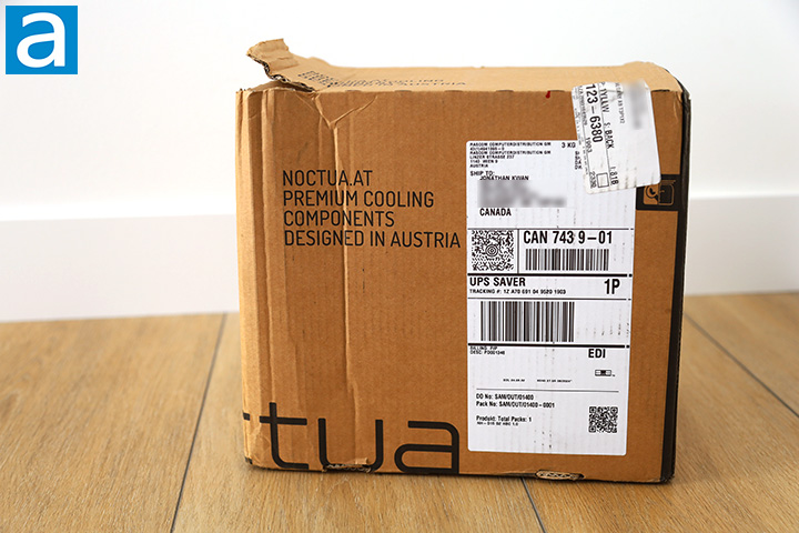 Our review unit of the Noctua NH-D15 G2 HBC arrived in a medium-sized brown corrugated cardboard box from the company's headquarters in Vienna, Austria. After making its trip across Europe and most of North America with the Atlantic Ocean in between using UPS Saver, the package arrived in acceptable condition to us here in Calgary, Alberta, Canada, save for a sizable rip on the top of the box. That said, everything inside was well-protected, and as you will see, all the contents inside came in pristine condition.