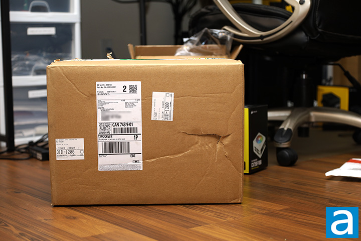 Our review unit of the Noctua NH-D15S chromax.black arrived in a large brown corrugated cardboard box from the company's headquarters in Vienna, Austria. After making its trip across Europe and most of North America with the Atlantic Ocean in between using UPS Saver, the package arrived in acceptable condition to us here in Calgary, Alberta, Canada, save for a sizable hole punched in the front. That said, everything inside was well-protected, and as you will see, all the contents inside came in pristine condition.