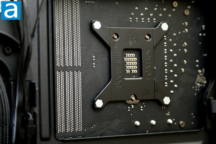As you can see in my photo above, Noctua's mounting system on the Intel platform utilizes a proprietary backplate supplied by Noctua that installs over the stock plate for optimal weight distribution. The inertia generated by such a large heatsink is really something that needs to be addressed accordingly, otherwise it may simply fall out or cause excess stress on the motherboard. To install, simply align the openings on the supplied backplate with the screws of the motherboard's stock backplate, and flip the motherboard around.