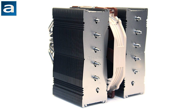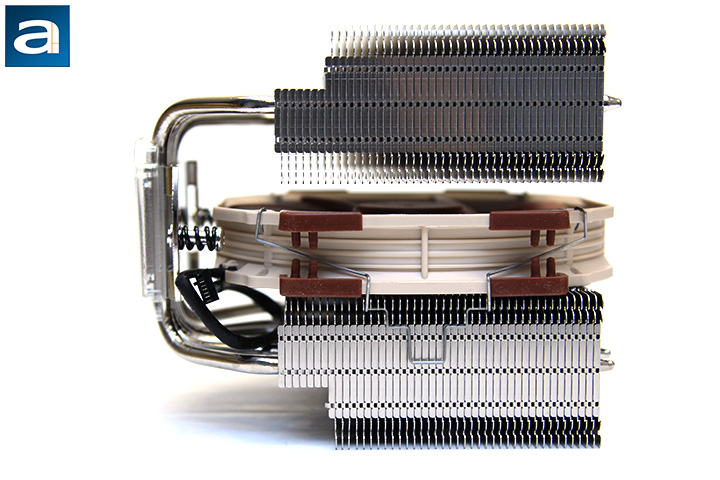 As far as engineering and implementation goes, fans can be mounted on using two clips each. Only one NH-A15 PWM fans are included out of the box, and it is pre-installed for packaging reasons (You will need to take off the fan for installation anyway). A secondary fan can be purchased separately if you wish to execute a dual fan configuration. These wire clips are easy to attach and remove in a uniform fashion. Rubber strips on the heatsink are superseded by integrated rubber dampeners on the included NF-A15 PWM, used to reduce mechanical noise emissions during operation.