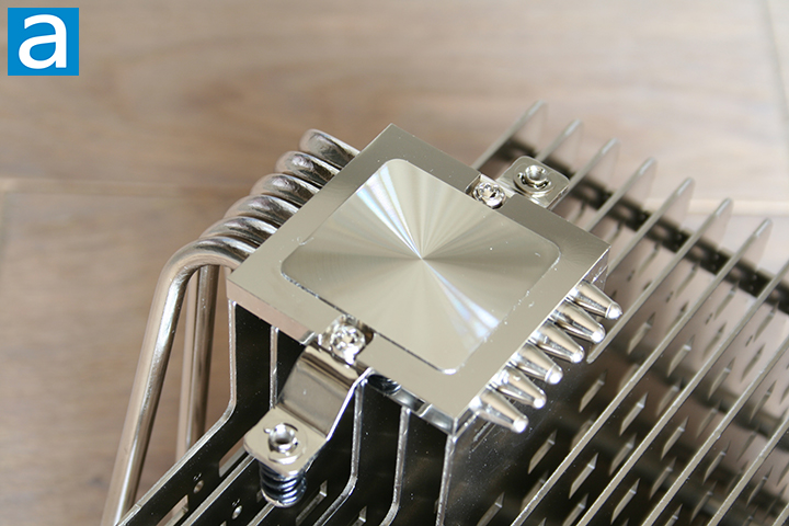 The base is electroplated with nickel that sits on top of the copper material. Nickel has a thermal conductivity of 90.9 W/mK, which is much lower than copper and aluminum. Despite the lower thermal conductivity, the electroplated layer is quite thin and will not impact the performance of the cooler, at least not significantly. Nickel and nickel-base alloys can withstand corrosive environments and high temperatures, which proves to be an advantage for devices made for dissipating heat. The reason for this can be traced to the ductility and toughness of nickel. Thus, nickel is chosen for corrosion prevention on this cooler. The result is a longer-lasting cooling that will be less likely to lose its cooling performance over time.