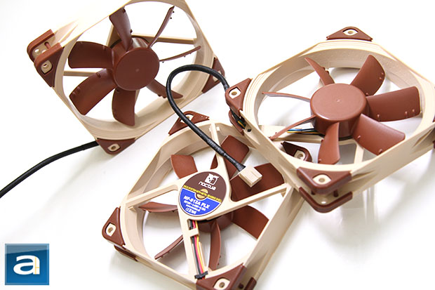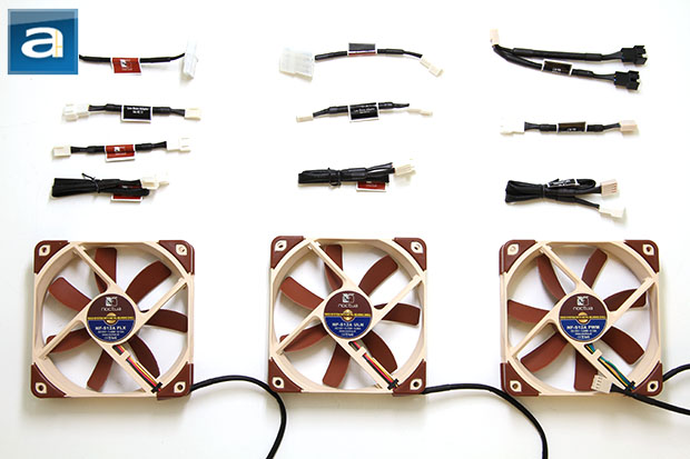 The LNA and ULNA adapter brings the Noctua NF-S12A FLX from its 1200rpm maximum to 900rpm and 700rpm, respectively; while the ULNA adapter on the Noctua NF-S12A ULN straps it down to 600rpm from its maximum 800rpm. The LNA adapter on the Noctua NF-S12A PWM caps the maximum RPM from 1200rpm to 900rpm. The NF-S12A PWM has an operating range from 300RPM to 1200RPM in PWM mode. There is no appreciable acoustical noise difference between 700rpm and 600rpm as far as I'm concerned, and very little difference between 900rpm and 700rpm as far as Noctua fans go. We'll go over this in the Tests section in just a short moment. In my opinion, the FLX version should probably accommodates the needs of most quiet PC enthusiasts better than the ULN version. However, if you own computers that support PWM fans, I do not see a reason why you should not buy the PWM variant. PWM signals are vastly superior to voltage control in adjusting the fan speed; this is not to mention it is backwards compatible with 3-pin voltage headers.