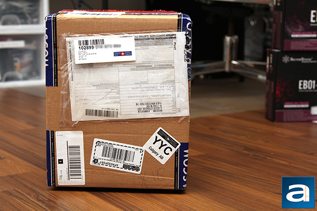 Our Noctua NH-D15 review unit came in a large, brown corrugated cardboard box from Noctua's headquarters in Austria. After traveling half way around the world, it was transferred to Canada Post using the XpressPost service when it arrived on Canadian soil. As usual, a delivery note was left in my mailbox, and I went to a local postal outlet around one minute drive away to pick it up. When I arrived at the post office, I quickly spotted a familiar box wrapped in lots of blue "RASCOM" tape, as it always has been in the past, on the shelf in the back room already. The person at the counter scooted over, handed the box over to me and remarked, "Not a lot of stuff comes from Austria!" Well, I bet I am the only one in the area who constantly receives packages from the country in question, haha.
