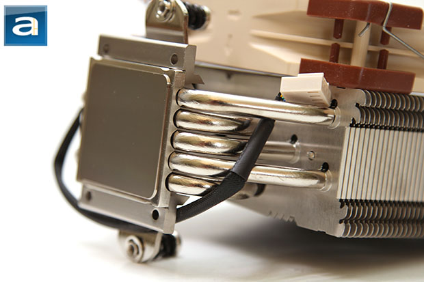 Like all Noctua heatsinks we have reviewed in the past, the NH-U12S is a copper/aluminum hybrid heatsink electroplated with nickel. The vital parts such as the base and heatpipes are built using copper for best heat transfer ability with a thermal conductivity of 401 W/mK. The heatsink fins utilize aluminum as its material due to its lightweight properties as juxtaposed to copper -- this is to allow the construction of larger heatsinks without stressing too much on the motherboard due to weight. Aluminum has a thermal conductivity of 237 W/mK which is not as optimal for heat transfer as it retains more thermal energy.