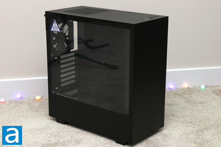 In addition to the aesthetic changes, you will see how the whole front and top are made from a single sheet of aluminum rather than a front panel that breaks away. As such, intake areas on the front are a bit different from the past H-series cases. On the left, the solid metal half combined with the glass side means you do not have any intake from the left side. Instead, intake to the front fans are located on the other side as well as underneath the front, as we will see soon enough. In terms of dimensions, the NZXT H500 is 210mm wide, 460mm tall with feet installed, and 428mm deep. Compared to the most recently reviewed MetallicGear Neo, this H500 is the same in terms of width, but larger in both height and depth. At a net weight of around 7kg, this comes at a weight that is not too surprising for its size and materials.