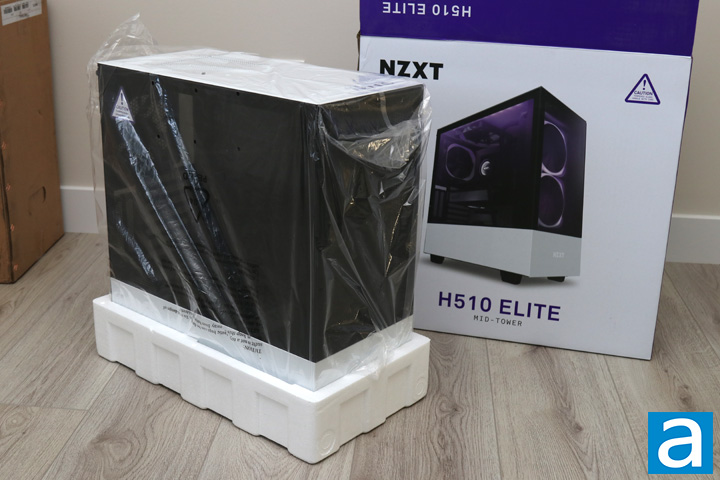 As expected with most cases, the NZXT H510 Elite comes to us wrapped in a clear plastic bag to prevent surface damage or other aesthetic issues before it is shipped to the end user. In addition, we have two large white foam brackets to further protect the large glass and metal box. Today's review unit is the White and Black variant of the NZXT H510 Elite, but this case also comes in a Matte Black version. Otherwise, a flat bag with a manual and a white cardboard box is included, providing users with information and accessories for working with the NZXT H510 Elite. As for warranty, NZXT covers the case for two years, which is an acceptable length of time.