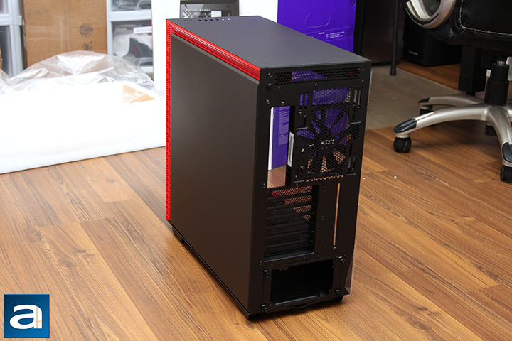 Unique to the NZXT H700i is the fact the right side panel is not held on by any screws. Instead, a release mechanism is designed such that the panel can be unlatched by pressing a button at the upper left corner at the back. I am a big fan of this design, as it is convenient, easy to use, and works flawlessly.