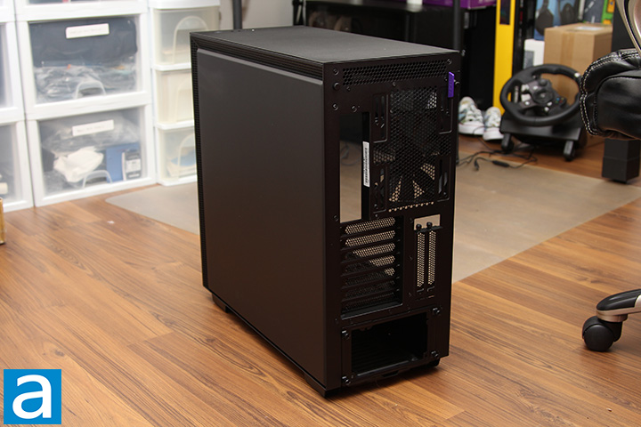 Meanwhile, the top panel is a solid piece of plastic, but has accommodation for up to three 120mm or two 140mm fans or a radiator of equivalent size. Traditionally, case designers install top mounted fans to efficiently draw heat away from the processor and other heat generating internal components. This makes a lot of sense, since heat rises, so we are only adhering to the natural laws of physics. Unfortunately, this is a two-way street, as it is also very easy to get a lot of dust in the system that way when it is turned off. Some users really like it, but personally, I never install fans in this area, so usually I will be complaining at this point if I see an unrestricted opening. NZXT cleverly created edges that curve inwards on the sides enclosed by a mesh grille for airflow on the H710i. This is a design continuation of the same ventilation design as the front air intake. An additional opening protected by an integrated grille at the back -- more on this later -- ensure the chassis design's impact on thermal performance is minimized. I like this design.