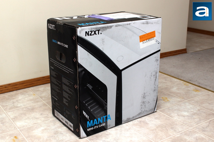 Today's review unit of the NZXT Manta arrived via the good people from FedEx, with their International 2Day service. As this box is big enough to be its own shipping container, there is no extra box, and what you see in front of you is the retail container. Arriving to our APH Networks offices in Calgary, Alberta, this box was sent from NZXT's offices in the City of Industry, California. Otherwise, the shipping container does not seem to be in great condition. There is noticeable discoloration and slight denting in various areas. Hopefully, NZXT has done a good enough job to keep the internal Manta intact.