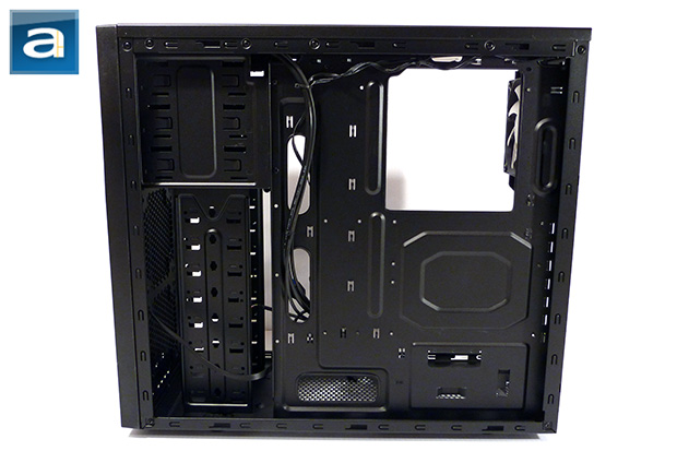 The side panels on the NZXT Source 220 came off very easily, and the thumbscrews offer minimal resistance, allowing you to easily remove or reattach them. Having beveled handle grips, I absolutely love the simple and easy to remove side panels, and I must say these are some of the better ones I've encountered. The interior of the computer case is painted with the exact same color as the outside -- a very nice finish, and no sharp edges appear to be visible. This case is still on your value end of the price scale, so don't be expecting any dust filters or sound proofing foam. Of course, that just means you get great heat dissipation, and will have to enjoy a louder computer with dust.