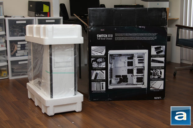 Our review unit of the NZXT Switch 810 came via FedEx International Economy in its original retail box -- something that you can just come to expect for a computer chassis. They are designed with shipping in mind, and this one is no exception. We were pleased to discover that everything arrived in excellent condition from California, and with a knife in hand, we got straight to work.