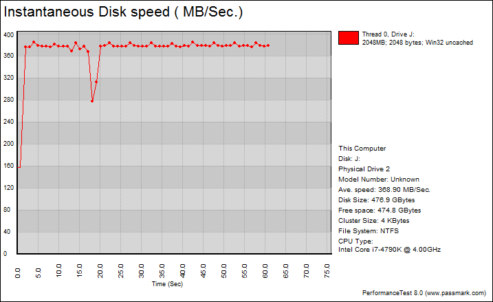 This Advanced Disk Test, which is part of PerformanceTest, measures the data transfer speed when reading or writing data to one or more disks. The speed that data can be transferred between memory and a hard disk drive is one of a system's most important performance aspects. There are quite a few factors which have a bearing on this speed and the Advanced Disk Drive Test allows the user to vary most of these factors and compare the results.