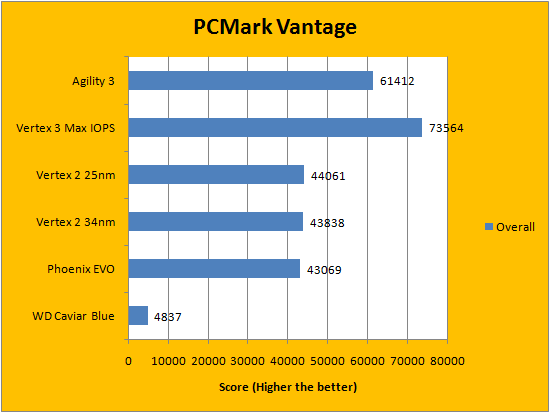 PCMark Vantage aims to shed a little more insight into real life performance of your computer hardware by semi-synthetic means -- and all insight is good, right? The great thing about standardized tests is anyone can repeat them and get very similar results, given identical hardware. Well, I am not going to narrate the stuff above in detail, because we all know graphs are there for a very good reason. As you can see in our graphs above, again the OCZ Agility 3 performed very well compared to its predecessors -- but it is also well distinguished from its bigger brother, the OCZ Vertex 3 Max IOPS 240GB, in performance. Depending on how you would like to interpret it, we are happy to see you are getting your money's worth with OCZ's flagship SATA 6Gb/s SSD, while the more value oriented Agility 3 series still delivers competitive speeds compared to last generation drives.