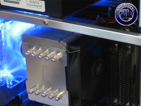 Installation goes for the same as other RAM. While I thought that the large OCZ Flex XLC heatsink may interfere with nearby slots, I had no problems installing all four modules into my Asus P5W64-WS Professional motherboard. The Scythe Infinity in which I thought earlier to possibly interfere with large RAM heatsinks in fact did not; it even added a positive to it as the nearby fan brings additional airflow over the top of the Flex XLC memory. Scythe Infinity plus a set of Flex XLCs may not be a bad combination at all.