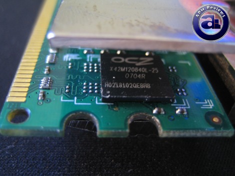 A quick peak behind the heatsink. Can't seem to find much by searching model numbers, but as far as I know they are ProMOS ICs, because at the PC2-6400 level, OCZ will not use Micron D9 chips until you move up the ladder.