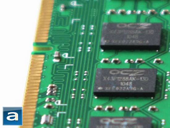 A closer look at the memory chips on the OCZ Platinum XTE PC3-16000 2x2GB dual channel memory kit. If you can't read the numbers clearly, it says "X43P1288AK-13D" on each IC. I can't seem to find more information on these chips, so if anyone has idea, please feel free to contact me. There are eight 128MB chips on each side for a total of 2GB on each DIMM. As mentioned on the previous page, these RAM modules run at a frequency of DDR3-2000 with 9-9-9-27 at 1T command rate. Since these RAM are designed for Core i5/i7 processors, they operate at a stock voltage of 1.65V. A pair of 2GB DDR3-2000 DIMMs running at CAS 9 latencies is pretty modest at best. We will cover overclocking right after our regular set of benchmarks in this review.