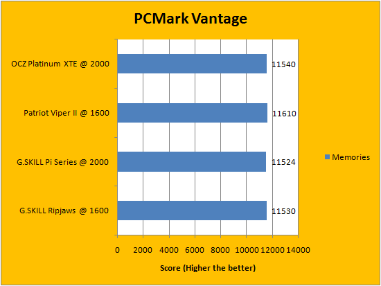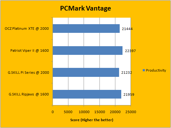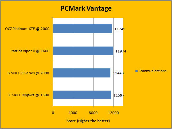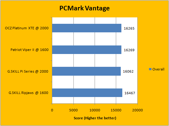 PCMark Vantage is a favorite benchmarking program for PC enthusiasts and reviewers alike, because it provides a very easy way to measure performance of different computers. It evaluates a system from eight perspectives (We only included the first seven results, since the HDD test is not very relevant to a RAM review), and can be considered a synthetic real life benchmark. From our results above, you will notice several trends. Some tests favor low latency memory, while others favor high bandwidth modules. All of our recorded data can be seen and compared in our series of charts above.