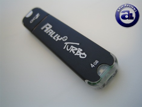 The OCZ Rally2 Turbo is a long yet sleek flash drive with black aluminum casing; retaining much of the design scheme of the second revision of the OCZ Rally2 flash drive. The OCZ Rally2 Turbo 4GB, like its predecessors, implements dual channel technology in the flash controller to split and store data on two different flash memory chips to enhance performance (Think dual channel RAM to double the bandwidth, or RAID0 inside the flash drive). The top face of the drive has the Rally2 logo with the "Turbo" behind it; much similar to the font used with the OCZ ATV Turbo flash drive. The back edge is rounded off with translucent plastic to symmetrically correspond to the cap on the other side.