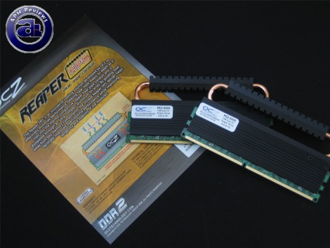 Micron has made quite a name with their D9 chips in the overclocking community -- and OCZ's name is quite strong in the memory market as well. However, a big name combination does not necessarily mean big price with recent DDR2 price drops. Complete with Micron D9 ICs, the OCZ Reaper HPC PC2-8500 2x1GB dual channel kit will take voltages up to 2.35V and still remain under warranty. Heat is not an issue, thanks to its full circuit copper heatpipes. For this reason, we expect a load of unspecified performance right off the bat. How well does these RAM step up? Let's have a close look at these memory modules today and, we'll take it from our benchmarks as well as the overclocking results.