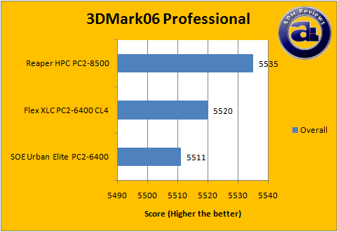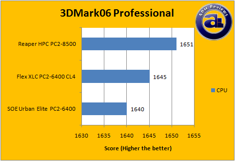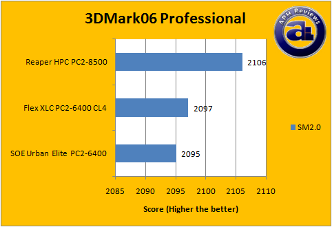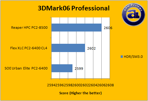 The OCZ Reaper HPC PC2-8500 holds a minor lead in the 3DMark06 Overall score. What constitutes this? Let's check the individual subscores.