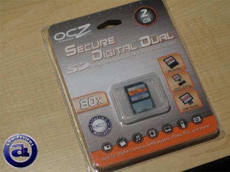 The OCZ SD Dual comes in variants of 133x and 80x; of which each comes in capacity of either 1GB or 2GB. The one we are taking a look at is the 80x version of the 2GB variant -- which strikes a balance between capacity, performance, and cost. As usual from OCZ flash media, it comes in a blister pack with a plastic box containing the actual product. Much unlike OCZ products, however, there's more emphasis on white and grey than orange in the color scheme. Otherwise, for all those who already own an OCZ flash product or have owned one previously, the size, shape, and packaging style is all the same.