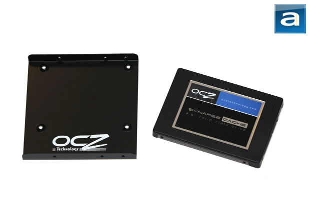 Since there probably is not too much we can write about a solid state drive -- especially when it comes to the physical aspect of it -- let us quickly cover it before we move onto the technical aspects and benchmark results. The OCZ Synapse is pretty much identical in appearance to every other OCZ drive we have reviewed in the past, with the exception of the sticker in the middle now modified to reflect this change. It features an aluminum housing to enhance heat dissipation, with a side benefit of being incredibly lightweight for what you get. On top of the textured matte black finish is a large label across the center to ensure the user will make no mistake that this is an OCZ Synapse drive. Measuring in at 99 x 69.9 x 9.1mm, these are pretty much standard dimensions for a 2.5" internal drive. It is also quite lightweight, with a manufacturer's specification of 79g. OCZ Synapse 64GB drives will have no problems fitting into your laptop hard disk bay as a cache disk for your hard drive if it has multiple bays, but chances are that the Synapse will end up in your desktop. If your chassis has no 2.5" mount, a 3.5" adapter bracket is included right out of the box, so you can easily install this SSD in any standard desktop internal drive bay. This makes the Synapse quite convenient to deploy in either environments for the end user. My only complaint is that the screw holes on the 3.5" adapter bracket is slightly smaller compared to the ones found on standard 3.5" hard drive, so if you need to use any other screws other than the ones provided by OCZ (Such as, if your are installing the Synapse into a 3.5" drive bay that require screws provided by your chassis manufacturer due to use of vibration dampeners) then you will need to find your own solution.