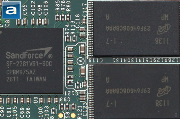 The OCZ Synapse 64GB's shell is attached to the metal backplate by four small screws. One of the screws has a warranty seal over it, so in order to take a peek inside the caching SSD, you will have to inevitably void your warranty. Therefore, to save you some trouble, I cracked mine open to take some photos of its internals for you to see. It is really nothing complicated -- just a small OCZ designed green printed circuit board, and that's it. Of course, there is more than what that meets the eye. The heart of OCZ's Synapse 64GB is the SandForce SF-2281 controller. As the drive controller is fundamentally very important to any SSD, what makes it so special is that it is capable of doing real time data compression to make extremely fast I/O performance possible without the need of external cache memory.