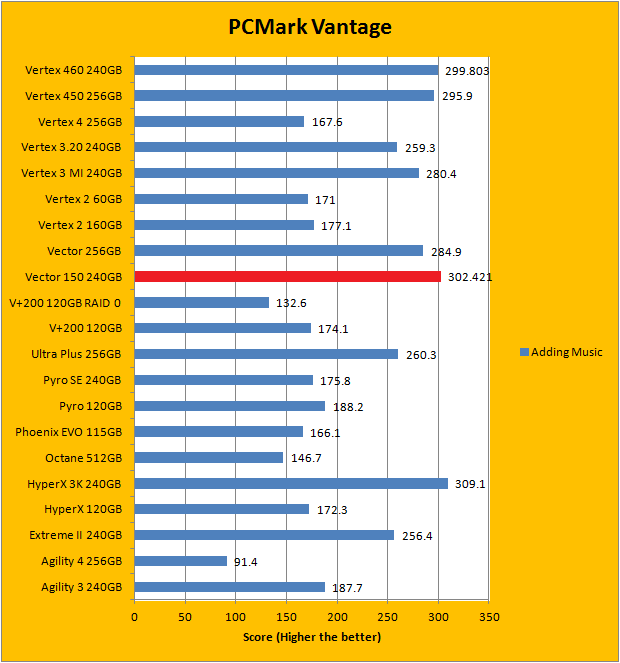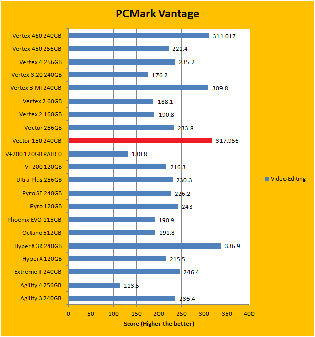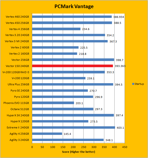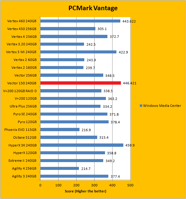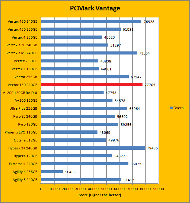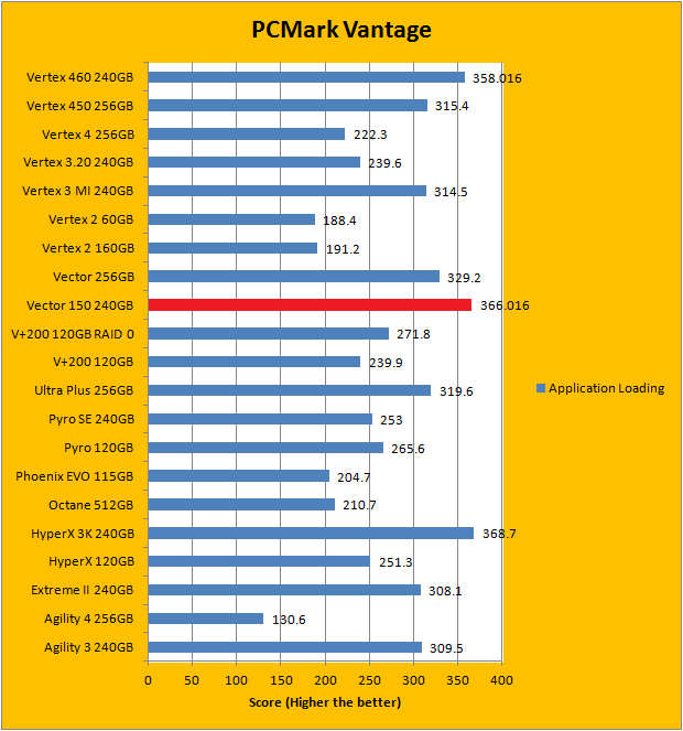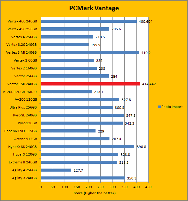 PCMark Vantage aims to shed a little more insight into real life performance of your computer hardware by semi-synthetic means -- and all insight is good, right? The great thing about standardized tests is anyone can repeat them and get very similar results, given identical hardware. Well, I am not going to narrate the stuff above in detail, because we all know graphs are there for a very good reason. Just to give you a bit of insight if you are too lazy to go through all nine comparisons, the OCZ Vector 150 240GB performed extremely well against some of the best drives in the industry, just like the OCZ Vertex 460 240GB. In fact, the Vector 150 is consistently first or second place in almost every test. It came in second overall; just below the Kingston HyperX 3K 240GB. Furthermore, it consistently outperformed its predecessor by quite a considerable margin with few exceptions. The Vector 460 follows very close behind.