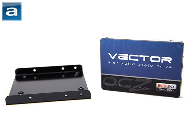 Measuring in at 99.7 x 69.75 x 7 mm, its thickness -- or lack thereof -- will ensure wide compatibility. That said, it is a bit heavier than other SSDs though, with a manufacturer's specification of a rather porky 115g. OCZ Vector drives will have no problems fitting into your laptop hard disk bay if you want to boost mobile computing performance. That said, I would still like to see a spacer included for those who have 9.5mm bay openings. On the other hand, if you want to use it in your desktop and your chassis has no 2.5" mount, then you are in luck -- as usual, a 3.5" adapter bracket is included right out of the box, so you can easily install this SSD in any standard desktop internal drive bay. This makes the Vector quite convenient to deploy in either environments for the end user. My only complaint is that the screw holes on the 3.5" adapter bracket is slightly smaller compared to the ones found on standard 3.5" hard drive, so if you need to use any other screws other than the ones provided by OCZ (Such as, if your are installing the Vector into a 3.5" drive bay that require screws provided by your chassis manufacturer due to use of vibration dampeners) then you will need to find your own solution.