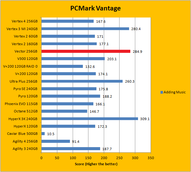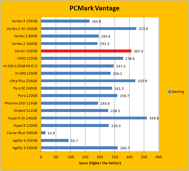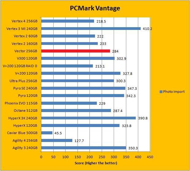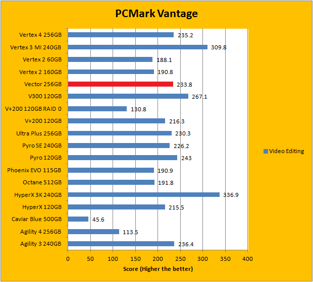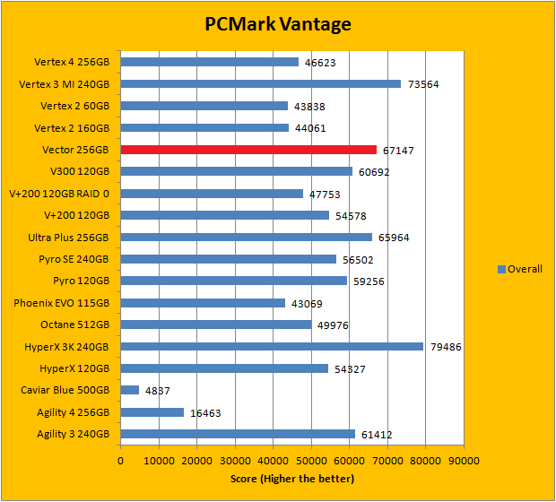PCMark Vantage aims to shed a little more insight into real life performance of your computer hardware by semi-synthetic means -- and all insight is good, right? The great thing about standardized tests is anyone can repeat them and get very similar results, given identical hardware. Well, I am not going to narrate the stuff above in detail, because we all know graphs are there for a very good reason. As you can see in our graphs above, the OCZ Vector 256GB performed very well against some of the best drives in the industry. It finished near the top for the overall score. As far as the individual breakdown is concerned, it traded quite a number of punches with the competition; even taking first place in a test. Overall, the OCZ Vector 256GB benchmarked surprisingly well, and delivered a balanced performance signature ranked close to the top.