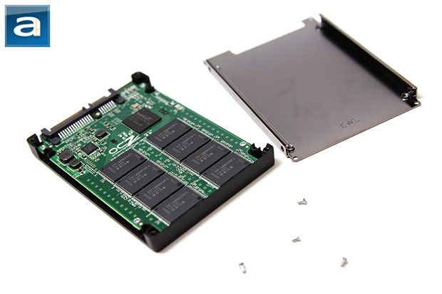 The OCZ Vertex 3.20 240GB's shell is attached to the metal backplate by four small screws. One of the screws has a warranty seal over it, so in order to take a peek inside the SSD, you will have to inevitably void your warranty. Therefore, to save you some trouble, I cracked mine open to take some photos of its internals for you to see. And by doing so, it is unsurprising to find how simple an SSD is inside compared to a traditional HDD. As always, you will find a small OCZ designed green printed circuit board, and that is it. Of course, it is more than what that meets the eye. The heart of OCZ's Vertex 3.20 240GB is the tried and true SandForce SF-2281 controller. As the drive controller is fundamentally very important to any SSD, what makes it the SF-2281 unique in its own realm is that it is capable of doing real time data compression to make extremely fast I/O performance possible without the need of external cache memory.