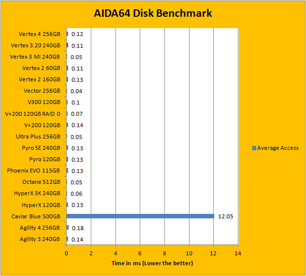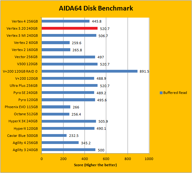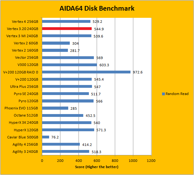 Since our SSD review benchmark results are presented in alphabetical order, first up on the list are results from one of our favorite benchmarking programs, AIDA64 Extreme Engineer. Just to note, AIDA64 Extreme Engineer is a full synthetic benchmark. Unlike full synthetic motor oil, this usually does not carry a good connotation, but it does provide valuable insight into performance between different drives and different controllers. As you can see in our graphs above, the tried-and-true SandForce based OCZ Vertex 3.20 240GB with updated 20nm Intel flash ICs is still among the best. In fact, it actually beat out the OCZ Vertex 3 Max IOPS 240GB -- one of the fastest SF-2281 drives in the market -- in all but one test. The only exception is its average access time of 0.11ms is quite a bit off the flagship Vertex 3's 0.05ms figure, but you are unlikely to notice any difference in real life.
