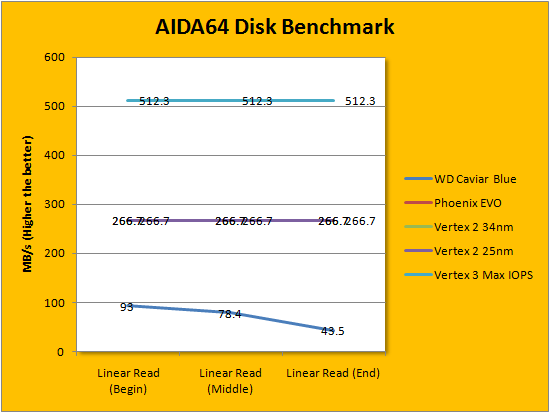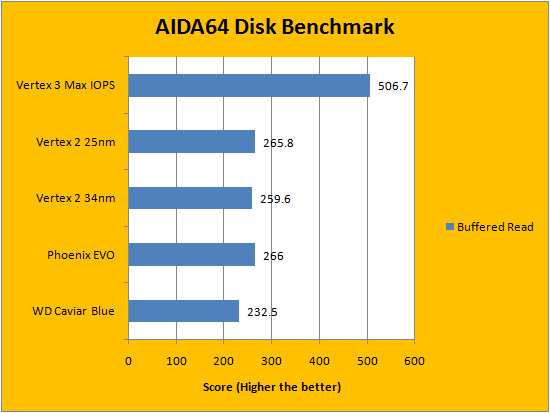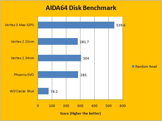 Here comes the interesting stuff. If you've ever taken probability and statistics, you will know that in a probability distribution function, the chances of getting an exact value is zero. Well, in this case, against all odds (No pun intended), all three SF-1222 SSDs came out to exactly 266.7MB/s for our linear disk read results. Talk about a weird coincidence. But what is not a weird coincidence is, again, the SF-2281 based OCZ Vertex 3 Max IOPS 240GB again destroyed everything in its path and left nothing behind. Delivering nearly twice the performance in the linear read tests, the same trend continues on as we look at the random read and buffered read results. Along with half the tested access time of its predecessors, I don't know how they pulled it off, but OCZ is not like Britney Spears who said "Oops! I did it again" -- it's more like, "Woot! I did it again".