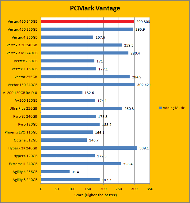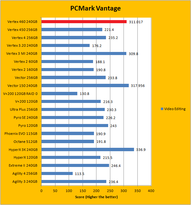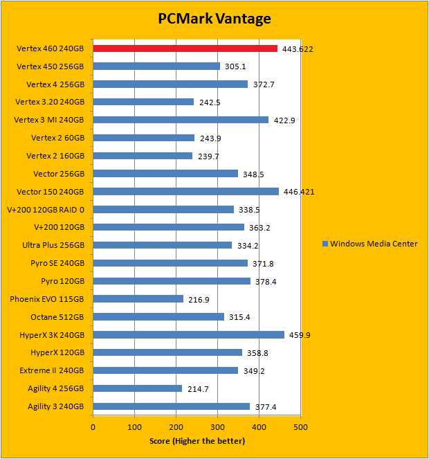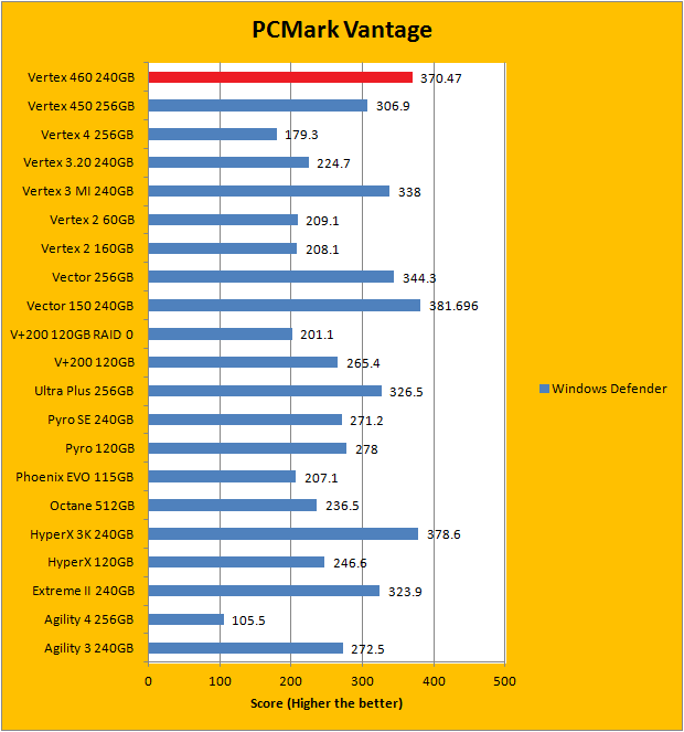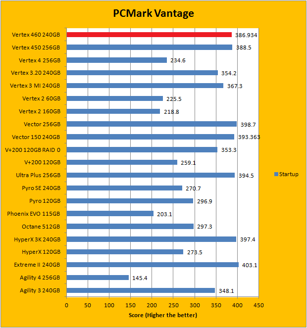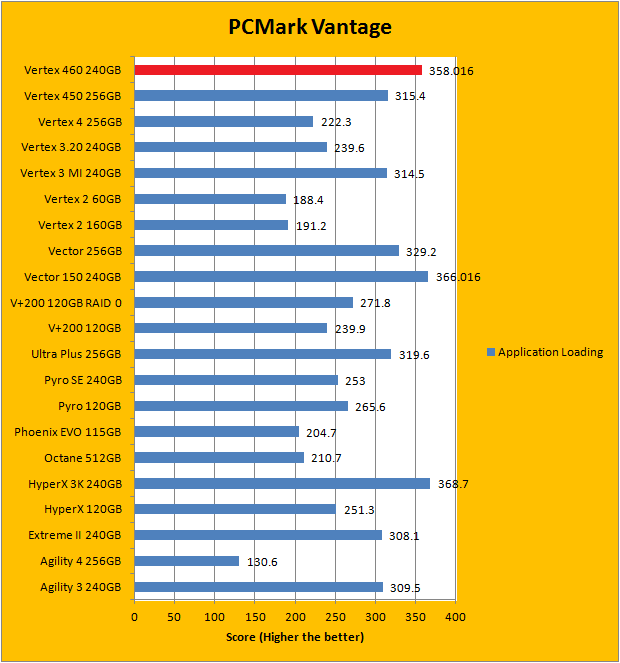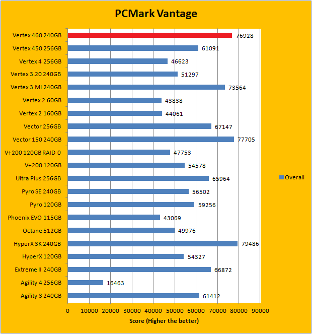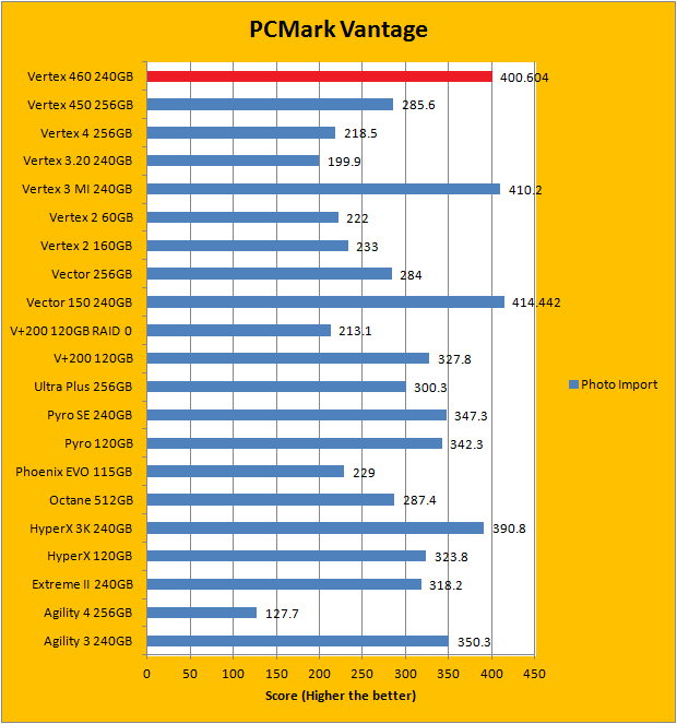 PCMark Vantage aims to shed a little more insight into real life performance of your computer hardware by semi-synthetic means -- and all insight is good, right? The great thing about standardized tests is anyone can repeat them and get very similar results, given identical hardware. Well, I am not going to narrate the stuff above in detail, because we all know graphs are there for a very good reason. Just to give you a bit of insight if you are too lazy to go through all nine comparisons, the OCZ Vertex 460 240GB performed extremely well against some of the best drives in the industry, just like the OCZ Vector 150 240GB. In fact, the Vertex 460 is consistently on the heel of the Vertex 150 in almost every test. This is very impressive, considering the flagship OCZ drive scores first or second place with few exceptions. Furthermore, it consistently outperformed its predecessor by quite a considerable margin, again with few exceptions. The Vertex 460 came in third overall.