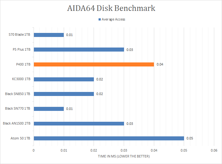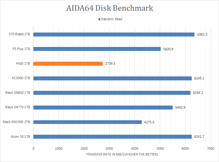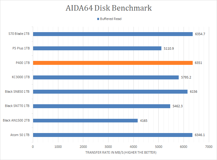 First up on the list are results from one of our favorite benchmarking programs, AIDA64 Engineer. Just to note, AIDA64 Engineer is a full synthetic benchmark. While it is not a representation of real-life performance -- such as how fast Photoshop opens -- it does provide valuable insight into performance between different drives and different controllers. Here, we can see varying results for the Patriot P400 1TB drive. The results for random read and average access were underwhelming, especially for random read where the P400 1TB fell behind by quite a large margin. On the other hand, the P400 1TB performed near the top with linear and buffered read transfer rates. With this first synthetic test, it is fair to say the results provided by the Patriot P400 1TB were a mixed bag.