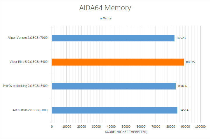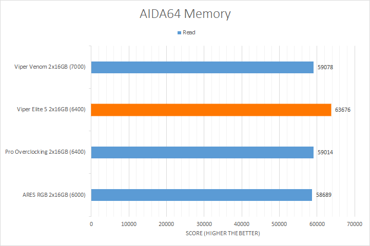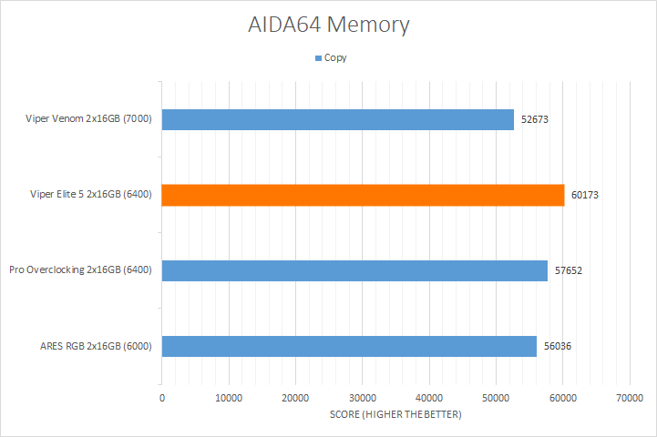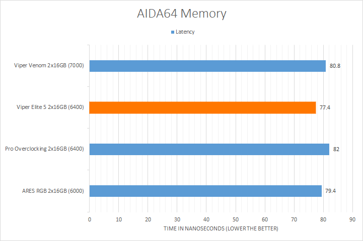 In our third set of AIDA64 synthetic tests, we have the memory benchmarks. Traditionally, these tests favor higher memory bandwidth RAM kits, whether it is the Copy, Write, or Read results. However, with AM5 systems, the optimum operating speed is not always the fastest one, due to change in ratio between the memory, memory controller, and the Infinity Fabric. Our Patriot Viper Elite 5 DDR5-6400 kit performed the best in every single metric, with the highest scores and the best latency across the board. Otherwise, the results speak for themselves.