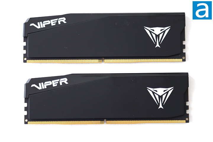 The Patriot Viper Elite 5 Ultra DDR5-6000 2x24GB, being a part of the latest performance DDR5 line from the company, utilizes a set of medium-profile heatspreaders. The black heatspreaders with white Viper logo and branding are prominent on both sides. The model we have does not have RGB LEDs, but you can buy a version that does. The Viper Elite 5 Ultra's aluminum pieces are conservatively shaped with simple lines, save for an angled end for some additional visual flare. Aluminum is lightweight and serves as a decent heat conductor. The Viper Elite 5 Ultra is 40mm tall from the pins to the top of the headspreader, or less than 10mm taller than modules with no heatspreaders at all. It is hard to imagine the Viper Elite 5 Ultra will interfere with any modern processor cooler, since the heatspreader height is moderate. Whether you like to call it a marketing gimmick or whatnot, it is impossible to find performance memory without any form of a heatspreader attached for decades now. They do undeniably serve a purpose in dissipating heat, but for most memory modules, unless run at a voltage significantly over designed voltages -- which you will not, thanks to integrated memory controller voltage limits on Intel and AMD CPUs -- this feature is certainly not a requirement.