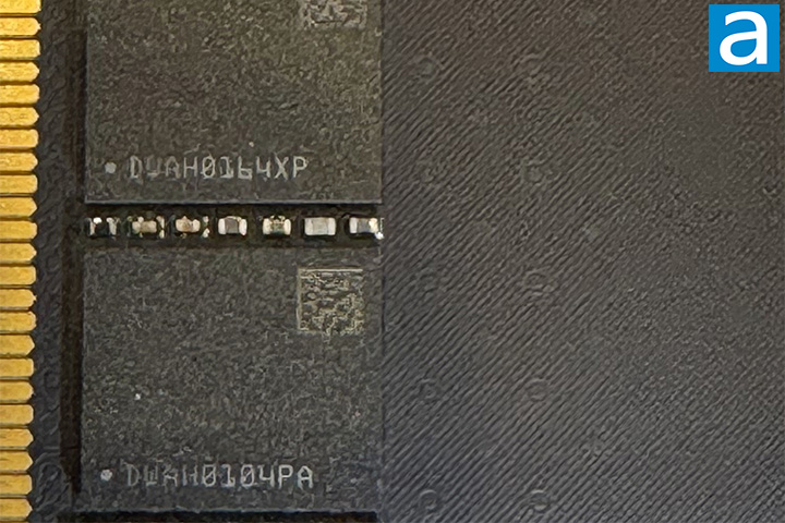 A closer look at the memory chips on the Patriot Viper Elite 5 Ultra DDR5-6000 2x48GB dual channel memory kit. The original manufacturer and part number inscriptions were removed, but they look like SK hynix M-die chips to me, with eight 3GB chips on both sides for a total of 48GB on each DIMM. As mentioned on the previous page, these RAM modules run at a frequency of DDR5-6000 with 28-40-40-100 latencies. These modules operate at a stock voltage of 1.40V, which is higher than the base DDR5 voltage of 1.1V.