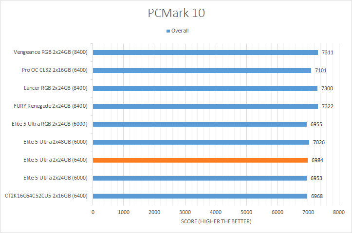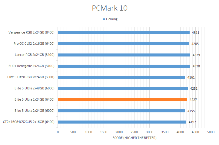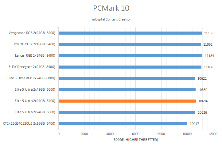 There was noticeable variance in the results of the tested kits, which you can see in our graphs above. The DDR5-8400 kits led overall by a measurable margin against the DDR5-6000 and DDR5-6400 kits, showing the Intel Core Ultra 7 265K took advantage of the extra memory bandwidth. There were no consistent winners or losers among them though, as all of them traded punches even with differing bandwidth and latency specifications. The Patriot Viper Elite 5 Ultra DDR5-6400 2x24GB delivered very respectable figures for its performance class, even at the top for two of them.