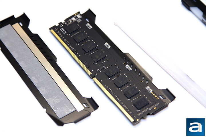 From our above photo, it should also be clearer on how the heatspreaders are designed. After removing the strip at the top, the heatspreaders are bent along the edge at the top and are mirror images of each other. The plastic lighting diffuser clips in between. Since the pieces are made from thin aluminum -- but thick enough to resist easy bending, so it feels solid in the hand -- it does not hold a lot of heat, therefore dissipating the heat energy relatively quickly into the surrounding environment. Either way, you will probably never remove them, since the main selling point of Patriot's Viper LED are the LED lights. If it does not clear your processor heatsink, then you might as well not buy this kit, haha.