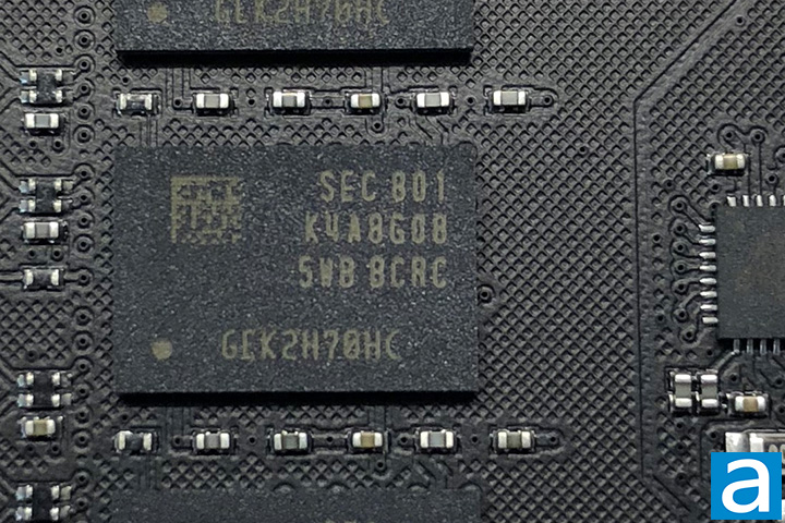 A closer look at the memory chips on the Patriot Viper RGB PC4-25600 2x8GB dual channel memory kit. The photo above should be quite clear -- it says "K4A8G08" on each IC. These are Samsung manufactured chips identified as K4A8G085WB-BCRC, with eight 1GB chips on one side only for a total of 8GB on each DIMM. As mentioned on the previous page, these RAM modules run at a frequency of DDR4-3200 with 16-18-18-36 latencies. They operate at a stock voltage of 1.35V, which is right at the Core i3/i5/i7 maximum safe limit of 1.35V. Here are the listed features for the ICs, as obtained from Samsung's website: