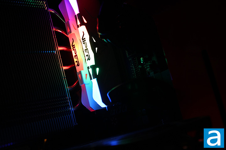 The Patriot Viper RGB PC4-25600 2x8GB, being a part of the latest performance DDR4 line from the company, utilizes a set of medium profile heatspreaders. It is designed to draw attention with its while and silver color scheme, not to mention its flashy five zone RGB LEDs. You can also buy it with a black heatspreader, but in my opinion, white is much more unique. It is a lot more aggressive looking than the Viper LED series as well, given the Viper LEDs were quite conservative in my opinion. The Viper RGB's aluminum pieces are distinctively shaped and molded with sharp lines to give it quite a bit of visual flare and complexity. Aluminum is lightweight and serves as a decent heat conductor, but it is not ventilated to make room for the plastic diffuser. The Viper RGB is just over a centimeter taller than modules with no heatspreaders at all. This is useful for systems equipped with side mounted CPU heatsink fans adjacent to the memory slots, as it can piggy-back off the generated airflow. Since the heatspreader height is relatively moderate, it is still entirely possible for the Viper RGB to fit under a well-designed cooler with sufficient clearance room. Whether you like to call it marketing gimmick or whatnot, it is impossible nowadays to find performance memory without any form of a heatspreader attached, haha. They do undeniably serve a purpose in dissipating heat, but for most memory modules, unless run at a voltage significantly over designed voltages -- which you will not, special thanks to integrated memory controllers on Intel processors -- this feature is certainly not a requirement. But I will admit they look pretty cool in any windowed chassis.
