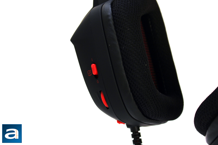 Last week, I reviewed a keyboard you could play snake on, the Cooler Master Storm Quick Fire XTi, and this week I have a headset with a snake on it. Patriot has kept their Viper here, as this has been seen on their other products like their memory line. As for the construction, the majority of the body of the Viper V360 is plastic. However, it is wrapped in my favorite soft-touch feel, so it is nice to touch and hold. The sides show Patriot's red Viper logo, and the ears are surrounded by a black speaker-like grille. Behind this speaker grille are some red LED lights to illuminate the left and right sides. Each of the ears are a curved trapezoidal-like shape, which is again different from other headsets in general, but it is not completely new either. Left and right indicators are engraved on the outside, and I am happy to report they are visible enough to see, but also discreet so it is not visible from far away. The two ears are held with two curved metal wires, covered in a rubber tubing. In addition, there is a sturdy plastic band spanning the top, and is lightly padded with a leather-like band. In essence, this headband is quite similar to the SteelSeries Siberia lineup, and I will share about my opinions of it later on. The several switches and dials on the left side are bright red in color, fitting with the red and black theme. As a whole, the Patriot Viper V360 is quite an interesting looking device. It is not really a copy of any of its competition, but it is not a huge differentiation from its competition either. I think it looks decent, but the aesthetics alone should make it clear the Viper V360 is for the gaming crowd. As for build quality, I am pleased to say there are no additional creaking or noises of flexing when adjusting the Viper V360. Despite majority of the build being plastic, it definitely does not exhibit any of the potential problems with this material. It may not be as sturdy as other headphones like the Kingston HyperX Cloud II, but it feels solid nonetheless.
