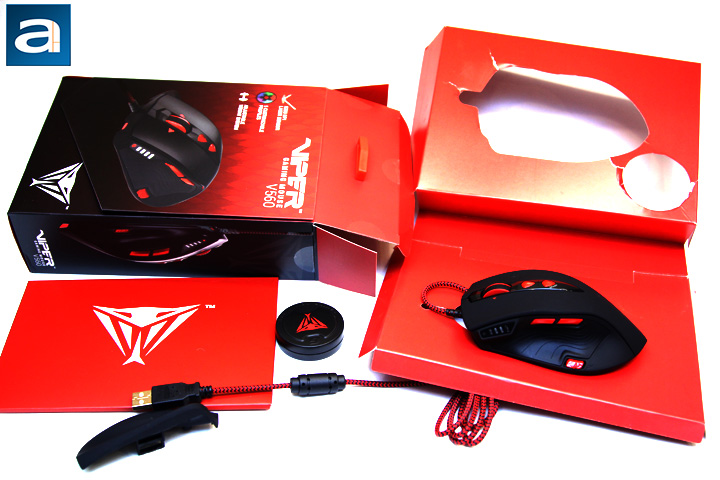 A few things you receive out of the box is, of course, the mouse and its braided cable. You will also receive a little puck with all the weights inside, interchangeable grip, and a red envelope, which contains a quick start guide, some Viper stickers, and a page that advertises some of Patriot's other products. The Viper V560 was very easy to set up, and the quick installation guide is clear and concise. After heading to the manufacturer's page to download the software, everything else was quite routine, and I was ready to use this mouse.