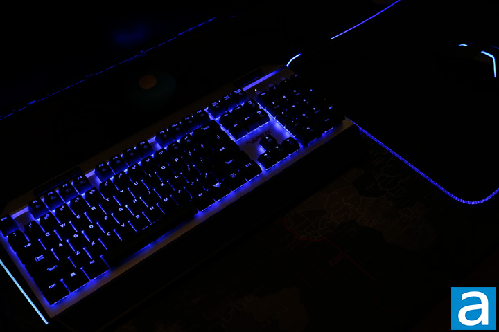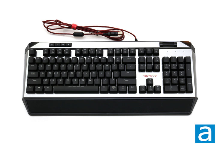 In the above picture you can see how bright the LEDs are. They have a nice spread throughout the whole keyboard, and the aluminum backplate reflects some of the light. At each side there is some LEDs as well, although I was unable to change their color. It seems like they are locked to a white LED. No matter the lighting effect and regardless of the color changes of the main LEDs, the side strips stayed in their white bluish color. It is unfortunate, since changing the side LEDs would have been nice, but in the grand scheme of things, it is not too big of a deal. The Patriot Viper V765 was nice to use. It is easy to setup and download the required software, while its switches are nice and clicky. As I have mentioned before, they are quite similar to Cherry MX Blue. I found they are not mushy at all and the feedback is clean. Throughout all the typing I did, I never found any issues with any of the specific keys, and they kept their general crispness. The only difference I found is that they are slightly heavier and in my opinion, feel like they require slightly more force to actuate than a Cherry MX Blue keyboard. Keep in mind, I am quite used to Cherry MX Reds and they are extremely light. Finally, the wrist rest is good for the most part. It is a little too small, but the soft rubber on it feels great. Overall, I enjoyed using the Patriot Viper V765.