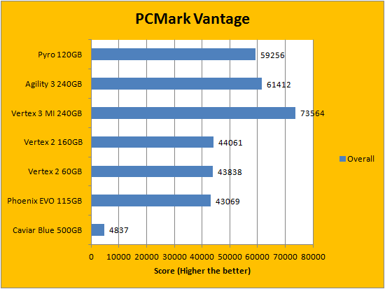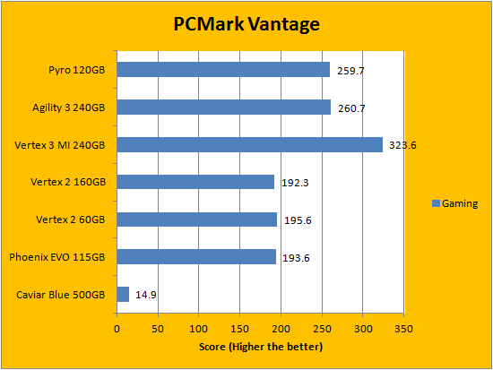 PCMark Vantage aims to shed a little more insight into real life performance of your computer hardware by semi-synthetic means -- and all insight is good, right? The great thing about standardized tests is anyone can repeat them and get very similar results, given identical hardware. Well, I am not going to narrate the stuff above in detail, because we all know graphs are there for a very good reason. As you can see in our graphs above, here is where the Patriot Pyro 120GB can regain some honor. Fundamentally, its numbers are very close to what the OCZ Agility 3 240GB is producing, with the pair frequently trading spots on the charts. Again, if we measure the Patriot Pyro 120GB against the OCZ Agility 3 120GB rather than the 240GB in the graphs above, the performance is going to be much closer.