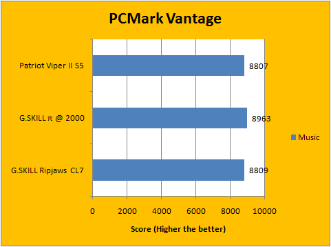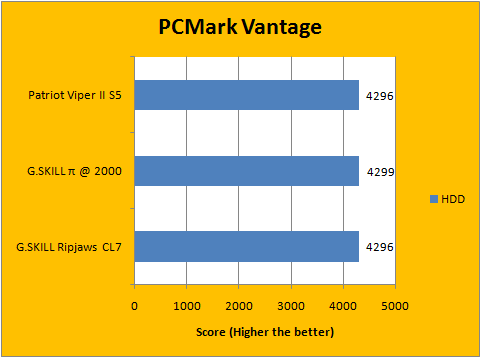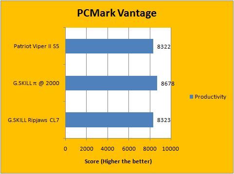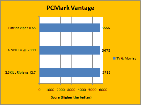 PCMark Vantage evaluates different aspects of your computer under simulated real life scenarios, and provides a score based on the program's proprietary performance evaluation algorithms. Once again, the posted numbers are quite close across the board -- the difference between the Viper II Sector 5s and Ripjaws are all within 2% of each other. Overall, performance of the tested RAM are quite consistent across the board, and the results are well within expectations. For a more detailed breakdown, our graphs above should tell the story quite well.
